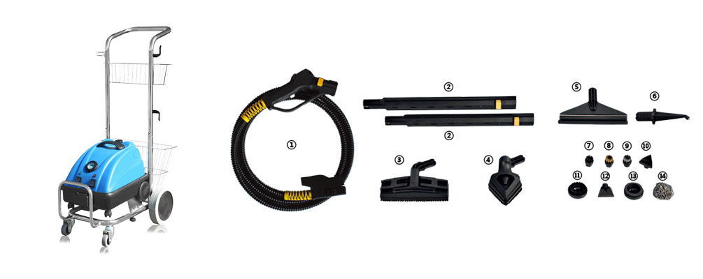 整套设备符合人体工程学设计,采用单相蒸汽发生器,电子水位控制——实现温度控制。电子控制面板包括:温度计,计时器。成套设备配有各种功能组件,清洁效果表现更为卓越,为保洁人员带来出色的使用体验,是一套成熟完整的室内环境清洁工具。