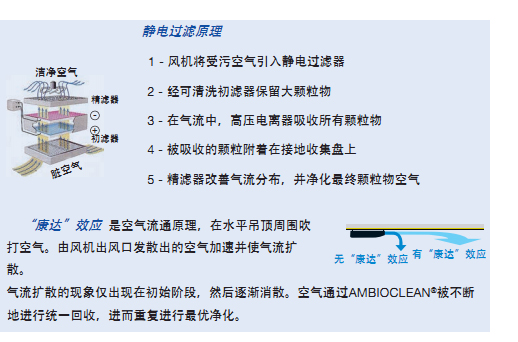 AMBIOCLEAN是运用“康达”效应进行的静电式环境空气净化。